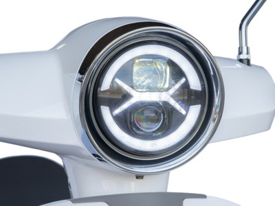Moderne LED-Scheinwerfer direkt am Lenker und neu gestaltete Rücklichter unterstreichen nicht nur die klassische Linienführung, sondern sorgen auch für mehr Sicherheit im Straßenverkehr. Die integrierte Coming-Home-Funktion beleuchtet nach dem Abschließen noch kurz den Weg – ideal beim Absteigen oder auf dem Weg zur Haustür. Der große Vorteil: Der LED-Scheinwerfer sitzt am Lenker und folgt jeder Lenkbewegung – für bessere Sicht und mehr Kontrolle, besonders bei Nachtfahrten. Lenkbewegung – im Gegensatz zu fest verbauten Frontleuchten. Das bedeutet: besseres Kurvenlicht, mehr Sicht und ein Plus an Fahrkomfort, besonders bei Nacht.