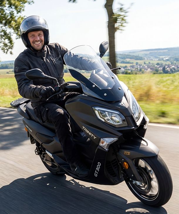 Ende März 2026 beginnen die Auslieferungen des neuen Jupiter GT. Wir liefern deinen E-Roller bis an die Haustür, an einem Wunschtag, Wunschzeit und Wunschort. Unser Fahrer wird dich vor der Lieferung telefonisch kontaktieren, damit du auch wirklich vor Ort bist. Das ist der Service von TRINITY.
