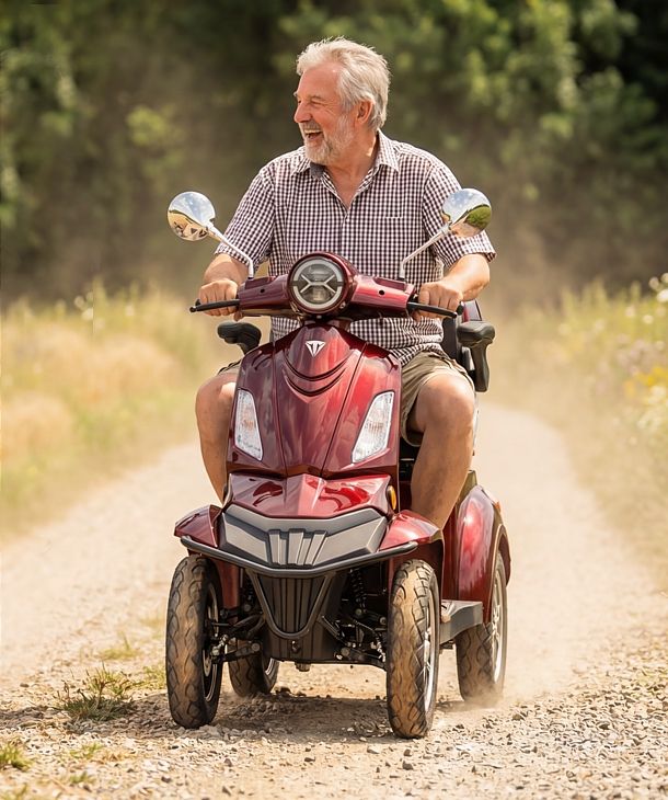Unsere Elektroroller und Seniorenmobil-Modelle, wie der Atlas 1800, vereinen kraftvolle Leistung, ressourcenschonende Technologie und höchsten Fahrkomfort. Dieses Ziel behalten wir stets im Blick. Mit TRINITY genießen Senioren zuverlässige E-Mobilität, innovative Technik und ein umweltbewusstes Fahrerlebnis – ganz ohne Kompromisse bei Sicherheit und Qualität.